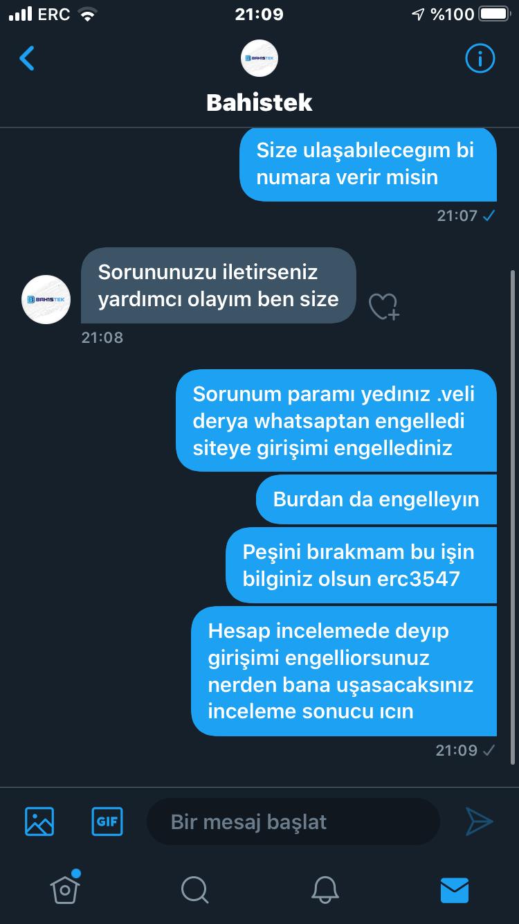 Selamlar,Bahistek sitesinden ilk önce call center Derya tarafından aranarak üye olmam dahilinde site hesabıma para tanımlamıştır.Aradan 1-2 geçtikten sonra büronun müdürü olan Başar diğer adı Veli olan müdür whatsaptan ben sizleri eski çalıştığım bürodan tanıyorum diyerek iletişime geçmiştir.Yüklü yatırımcı olan ben çevrem ve bir çok insana bu şekilde yaklaşarak ödemeler 30 dakikada ödenip diyip 2-3 kere ödeme yaptıktan sonra kazanaç sağlamam durumunda whatsaptan ve siteden engellemiştir. Dün parça parça 8k para yatırdım bakiyemi katladıktan sonra sitenin tüm call center ve müdürü engelleyerek ve hesabımı kitleyerek ortadan kaybolmuştur.