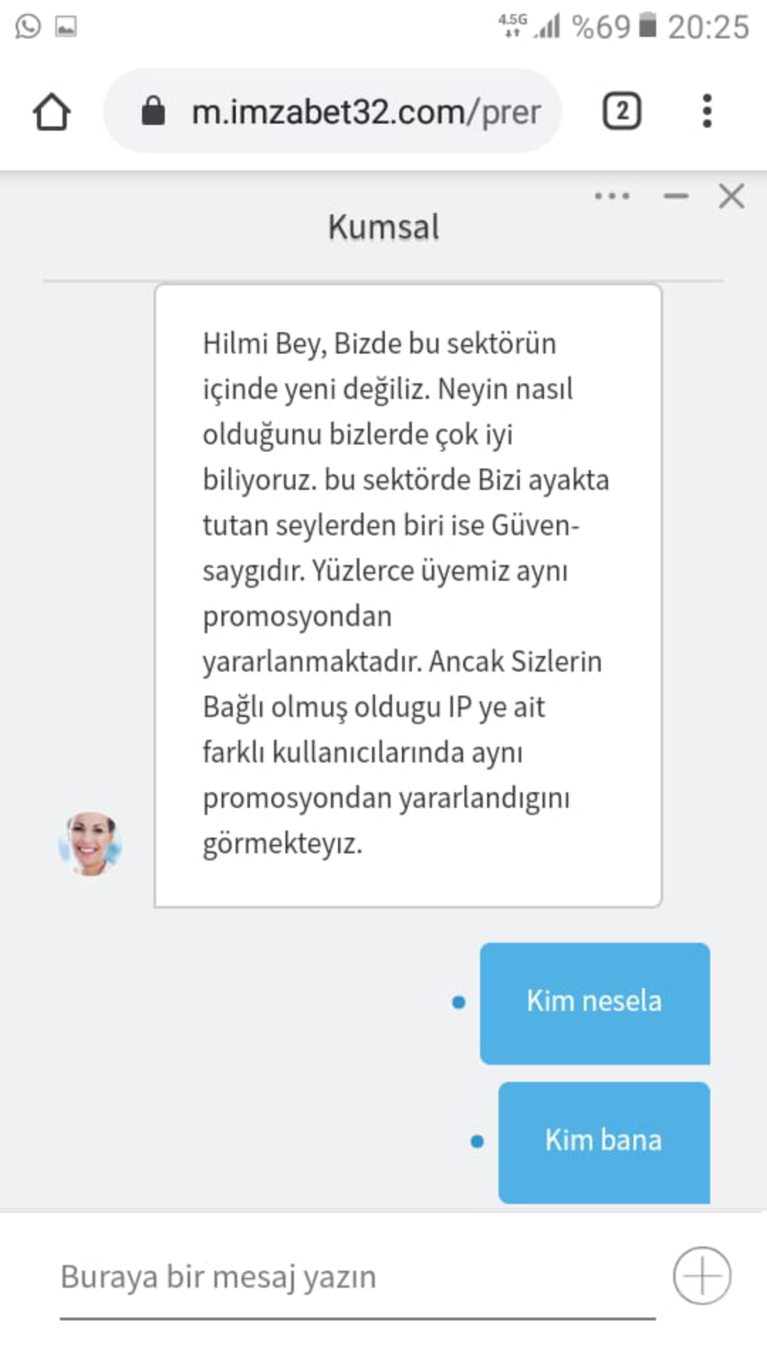 Canliya sordugumda bana ip cakismasi dediler bunu eger kanitlasinlar fazlasiyla siteye bedavadan para atcagimi soyledim tabi cvp yok bahane ya ip yalani simdi hepimiz yillardir bahis alan oyunculariz madem ip cakismasi var risksiz bahisi isterken niye demiyorda kazaninca bu bahaneyi sunuyorlar.