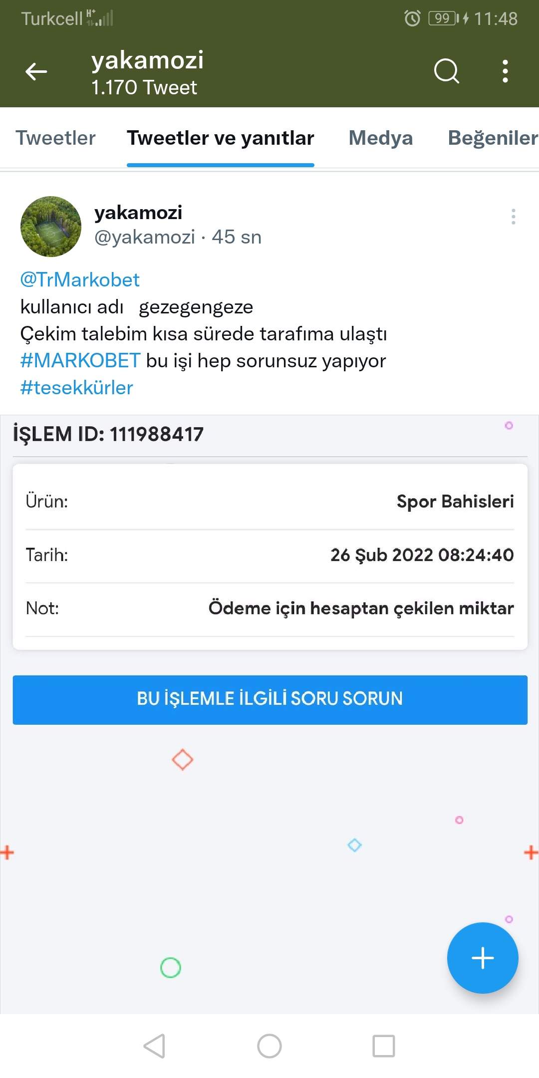 Çekim talebim kısa sürede tarafıma ulaştı teşekkürler markobet