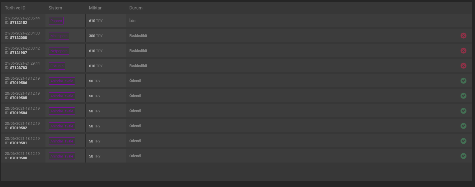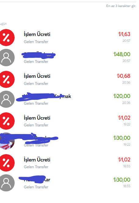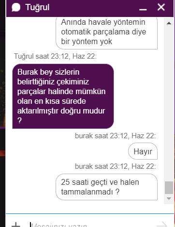 Ertesi gün papara ile talep verdirtti şaşırdım bende. Papara ile talep verdim 600tlyi 10tl-15tl-17tl-4tl-2tl-20tl şeklinde