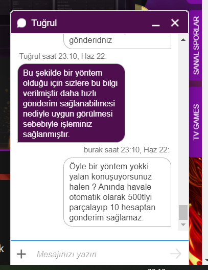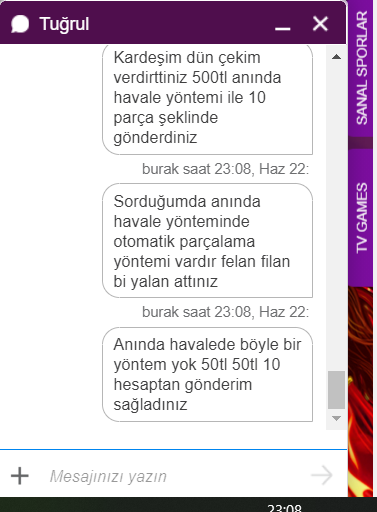 diyorum papara olsun diyorum yok sadece anında havale oda 500tl olacak. Bu arada bakiyem 1100tl'ydi. Finale gelelim: