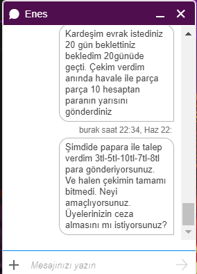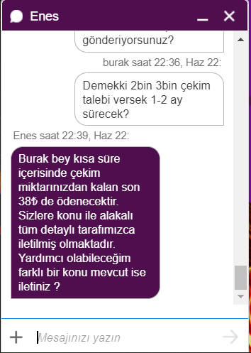 Her gün her yerde paylaşıcam kapansın gitsin işlerini düzgün yapmıyorlar. Hatta canlı desteğe bağlanınca sizinle dalga geçiyorlar