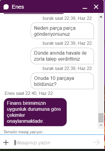 Sonra 500 tlyi 10 parça halinden farklı farklı hesaplardan 50tl 50tl 50tl şeklinde ödediler. Sonra 1 gün daha bekledim.